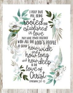 "I pray that you, being rooted and established in love may have power together with all the Lord's people to grasp how wide and how long and how deep is the love of Christ." - Ephesians 3:17-19